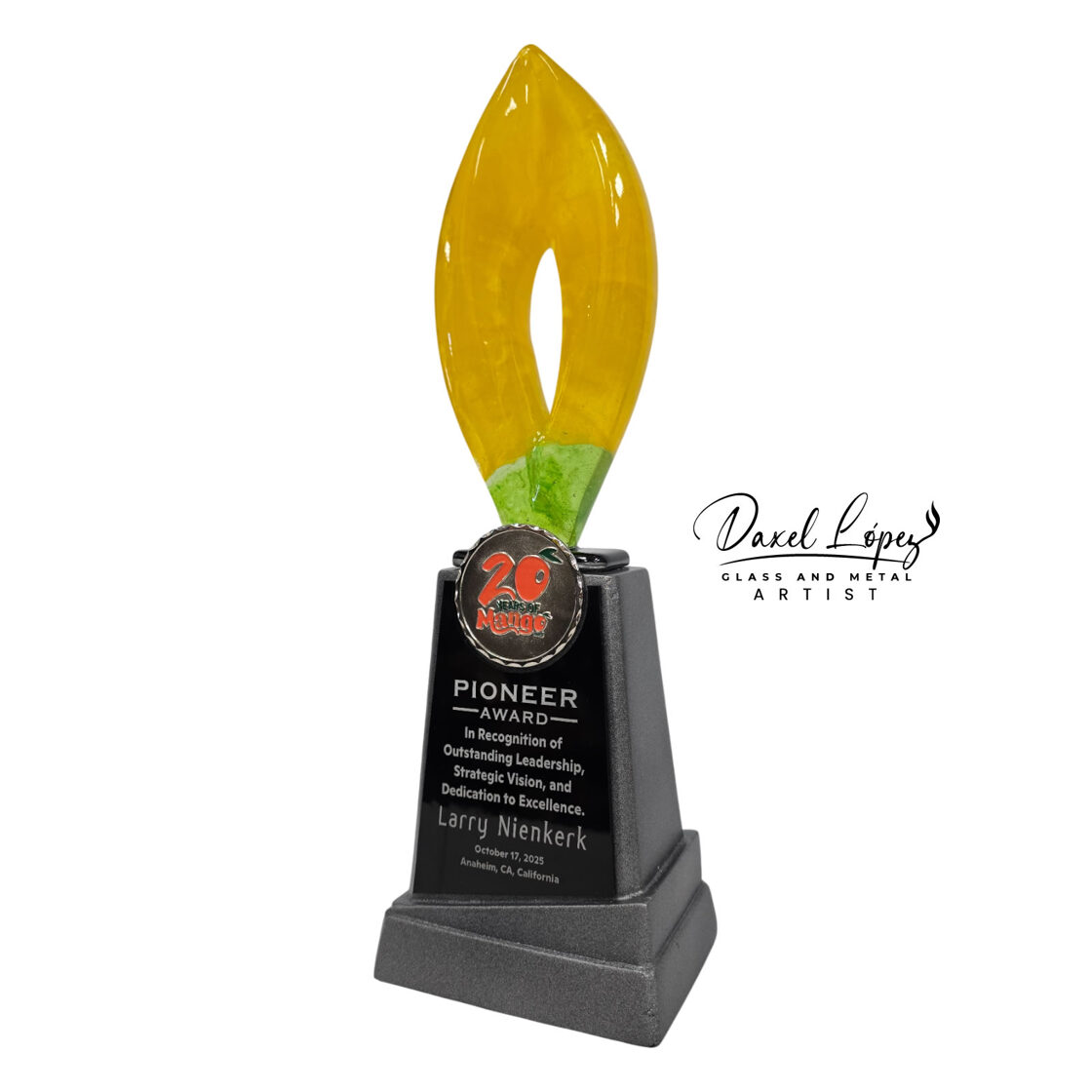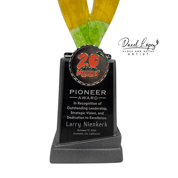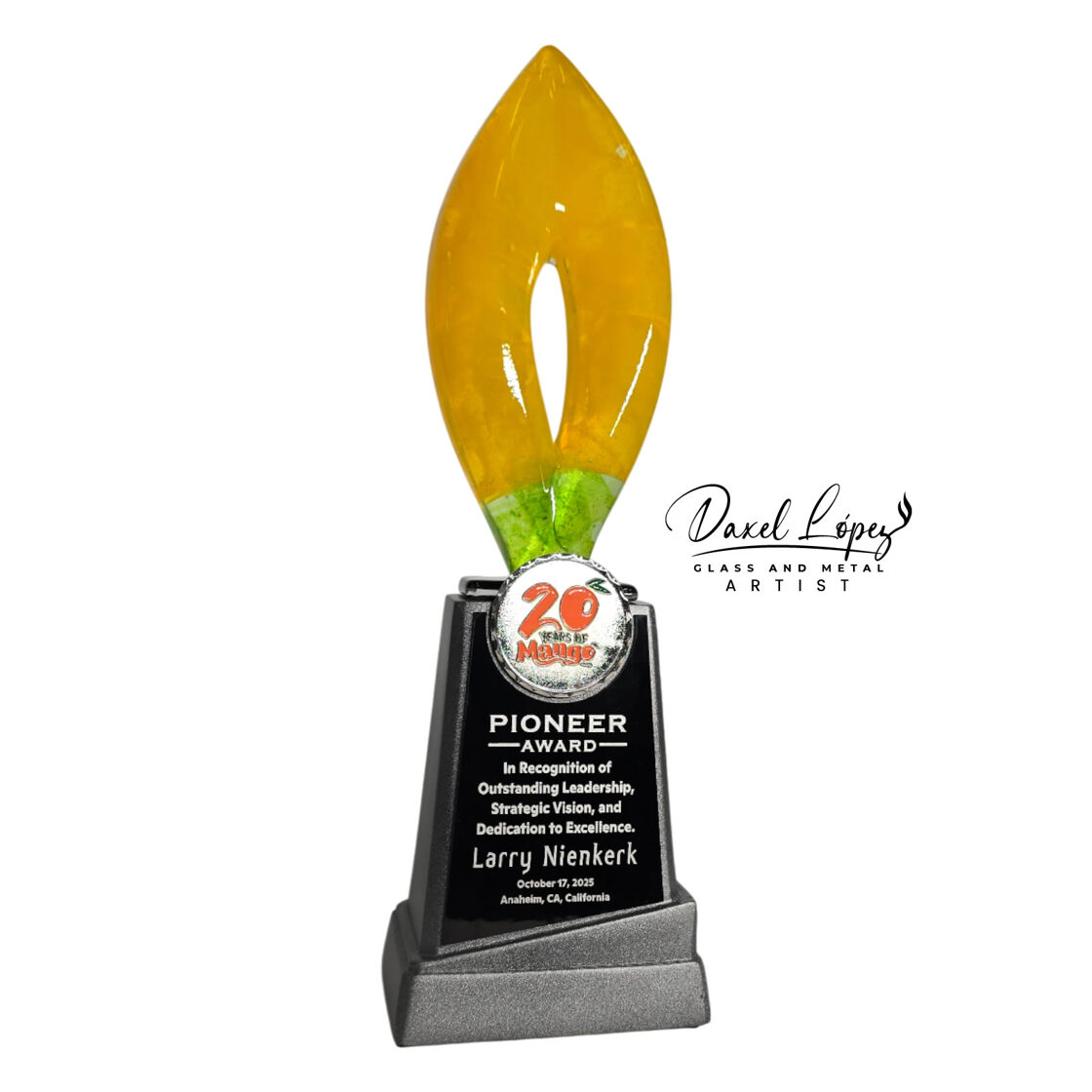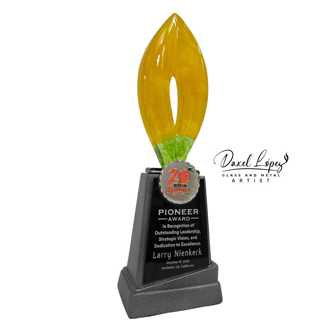 Each award is inspired by the vibrant colors and energy of the mango industry—shades of yellow, orange, and fresh green fused together to symbolize growth, vitality, and the rich agricultural roots that power this organization.
